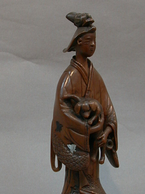 柘彫貝象嵌 犬を抱く女 明治 高さ=17.4cm \150.000