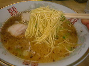 麺は宮崎には珍しい細麺のストレート。お腹の空いているときにはあっという間に食べてしまいます。