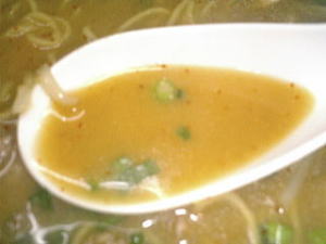 麺は中麺ストレート。歯ごたえがあって美味しいです。スープは濃厚ですが甘味があり味わい深いです。
