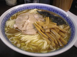 神田川沿いに続く行列が目印です。カウンターだけの小さなお店ですが、何時間もの行列が出来ています。もちもちした自家製の麺がたっぷり350グラム。特に女性の方は少なめに注文したほうがよさそうです。煮干を大量に使ったスープは太麺としっかり合います。つけ麺も非常に人気が高くて常連さんはラーメンにするか、つけ麺にするか非常に迷うそうです。