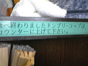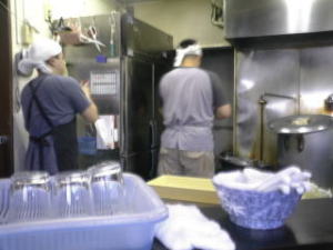 黙々とラーメンを作るのはこのお二人。ただし実際に作っているのはお一人だけでした。お店が狭いためどんぶり・コップはお客自ら片付けに協力します。