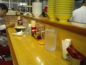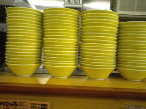 黄色いどんぶりがお店の雰囲気を明るくしています。
