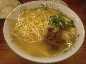 麺は太めの縮れ麺。自家製でぷりぷりしています。スープはコクがあります。しかし臭みはまったくありません。表面にサッとかけられたにんにく醤油がさらに香ばしさを増しています。