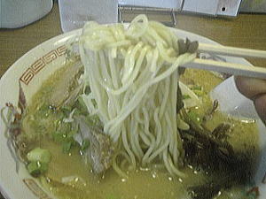 中麺のストレート。歯ごたえがあり、スープとよく絡みます。