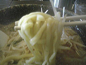 平手の太麺のちぢれ麺はスープと相性もばっちりです。