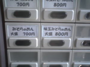 カウンターは道路と平行に3席、道路と垂直に4席しかありません。みそらぁめんは大盛りでも同じ値段ですが、普通盛りでもたっぷりあります。