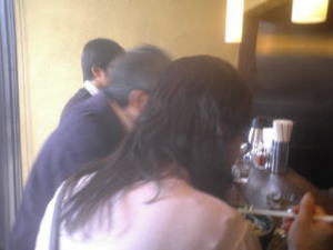 JR市ヶ谷駅と飯田橋駅の中ほどにある、ご覧の通り看板もないお店。ところが開店と同時にご覧のとおり、長蛇の列。この日も1時間待ちでした。それにしても、味噌ラーメン1本でこれだけの人気ですからすごいですね。色々なラーメンランキング「味噌部門」で第1位に輝いています。お店の中はカウンター7席のみで、店員さん2人でやりくりするにはちょうどいいキャパだなぁと思いました。しかし、この辺りには大学もたくさんあり、学生も含めてとにかく行列はスープがなくなるまで途切れることはないようです。