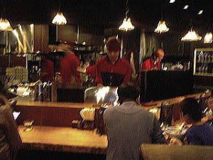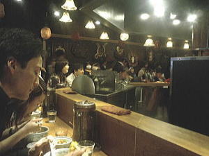 店内は内装に凝っていて厨房がステージのようです。湯切りをする時従業員は「せいやぁ〜」と気合の入った声が聞こえますまさにコンサート会場。