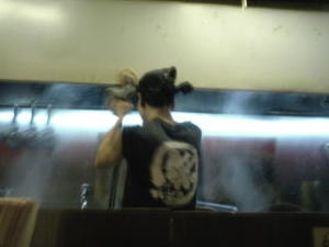 スープをかき混ぜる大将の後姿。どことなく風来軒の雰囲気が…。ラーメンマンといい、無鉄砲といい風来軒出身者がんばってるなぁ。