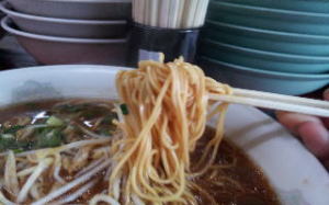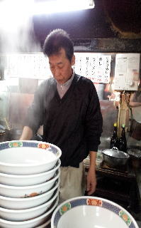 最初にスープを飲んだ時なんだか懐かしい気がしました。まず、しょうゆをベースにしたタレをどんぶりの底にしき、半透明のとんこつスープを注ぎ込みます。味の濃さの秘密はあのしょうゆだれにあるのではないかと思います。一度だけ仕込みの場面を見た事があるのですが、「鬼殺し」という日本酒を一升鍋に入れていました。