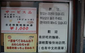 入口には韓国語と中国語で「いらっしゃい」