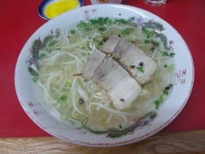 鹿児島の人気店です。とにかく安くておいしい。中盛300円、大盛350円。(20時以降はそれぞれ400円、450円)豚骨と鶏がらをベースにした塩ラーメン。まさに飲んだ後の締めに最高の一杯だと思います。のり一に来て、改めてラーメンの原点を見た気がしました。もともとラーメンというのは一般大衆向けの食べ物です。この値段でこのおいしさ。トータス松本は「日本一上手いラーメンだ。」と言ったそうです。まさに運命的な一杯に巡り合えました。