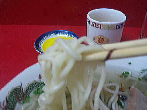 太目のストレート麺もスープによく合っています。透き通るようなスープは正に芸術品。