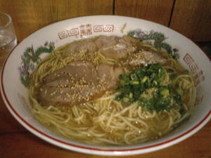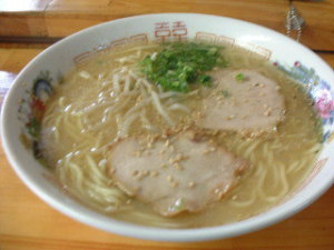 宮崎県と大分県の県境宇目、にある小さなお店。周りは山ばかりの所にぽつんと立っています。しかし常連客を中心にお昼時になるとお客さんで店内は一杯です。店の周りはとんこつスープ独特の香りが漂っていて、車を降りたとたん食欲が一気に増します。最近味が変わりました。以前に比べてずいぶんあっさり味になりました。あらかじめ注文する時言えば、こってり味も食べられます。