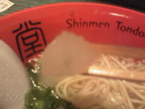 「とんどう」と読みます。味番ラーメンサイト沖縄のラーメン店第1号です。沖縄といえば「ソーキそば」が有名ですが、とんこつラーメンを出す人気店に行ってきました。「おとこ味」は豚骨を20時間近くじっくり煮込んだこってり系にとんこつ味、「おんな味」は鶏がらをベースにした塩味。どんぶりの底に書いてあるように「沖縄新麺」。新横浜ラーメン博物館の企画で「博多一風堂」の河原総師のプロデュースによるもの。「堂」という字が使われているのは、おそらくそのせいだと思います。沖縄のラーメン界に新風を吹かせて欲しいと思います。