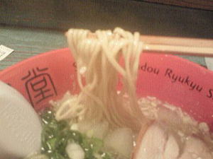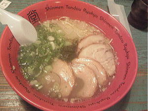 おんな味。実にさっぱりした塩味。どちらかというとこの「おんな味」の方が特徴的。どんぶりのそこには「沖縄新麺」と書いてあります。