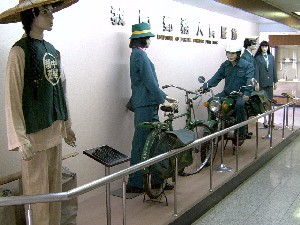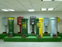 さすが郵政博物館前にちゃんとポストあるっす。 歴代ポストがずらり。結構カラフルでかわいい 漢の時代すでに発達していた郵便配達網。すごい このころはこんな感じでリレー配達。持ってるのはナマモノ? 中華民国第一号ポスト(たぶん) 説明文みるの忘れたのですがなんか記念っぽいポスト マカオポストに似てるハデ中華系ポスト。 営業時間中はスピーカで案内してくれてたポストだそう。 弾痕のある戦時中ポスト。血とか描いてある 配達員の歴史。マネキンが洋ピン顔で怖い(洋ピン?) ラクダで運んでいた場所と時代がありますよ、と。 世界のポスト(実物)が並ぶ。まあ、ライバルね 世界の郵政マークコレクション。これはうらやましい! 一番こってるデザインはペルーらしい 世界の郵便配達制服コレクション。なんかマニアっぺえ。 なぜアメリカの配達員だけ別個に展示してあるの? ヅラずれてます。 世界の郵政博物館(の写真だけ)紹介。私にどうしろと? おみやげ展示。キーホルダーかいました。 大変たのしかったです(人がいなくて)。 |